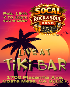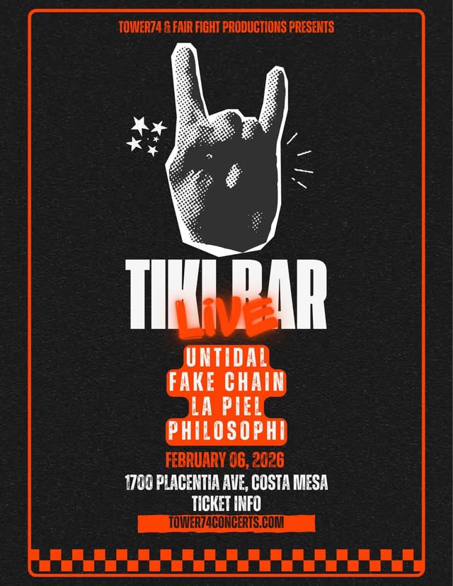 February 6th - The Hills - Fake Chain - La Piel - Philosophi Doors open at 7pm 🌮 food available 7-9:30pm 🎤 #tikibaroc #costamesa #orangecounty