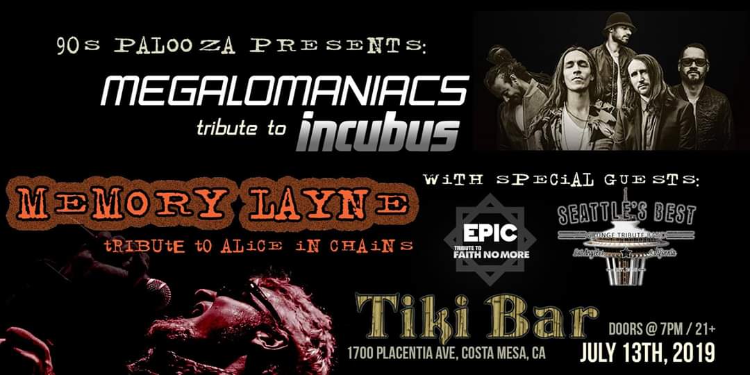 Live music from Memory Lane (Alice in Chains tribute), Seattle’s Best and Epic (Faith No More tribute)