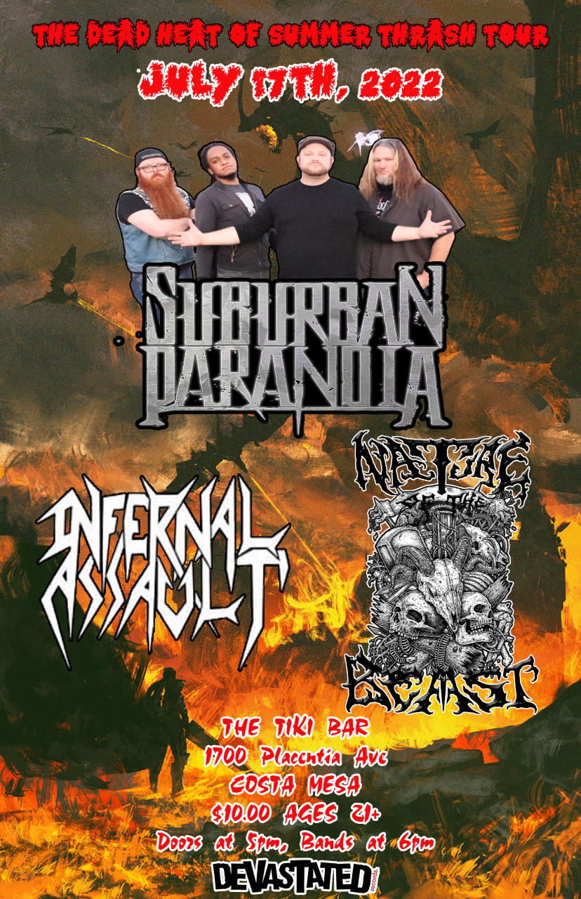 Live music from Suburban Paranoia, Infernal Assault, Nature of the Beast
