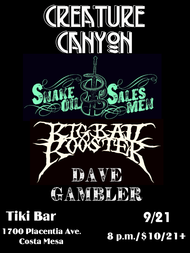 Live music from Snakeoil Salesman, Big Bad Rooster, Dave Gambler