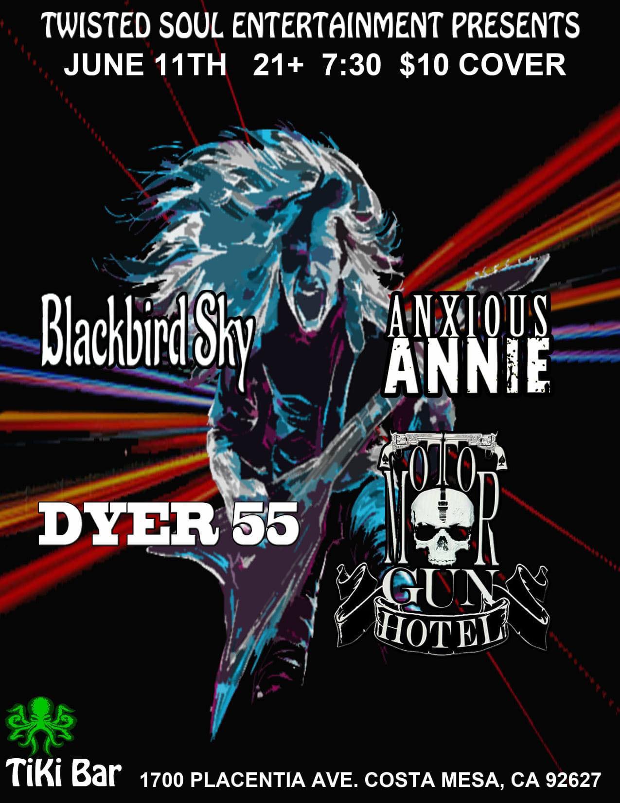 Live music from Anxious Annie, Dyer 55, Blackbird Sky and Motor Gun Hotel