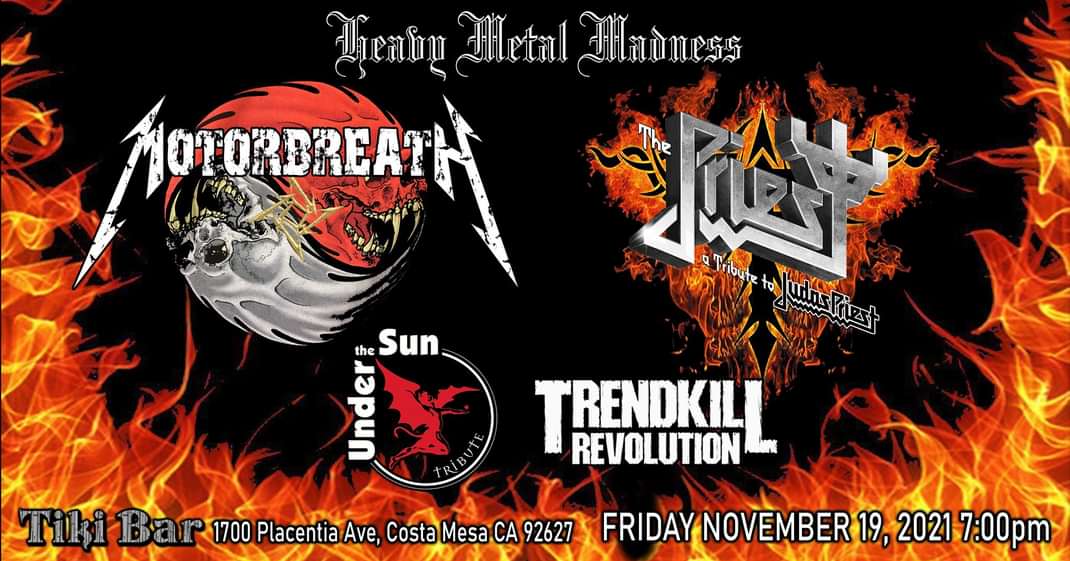 Live music from: Motorbreath (Metallica Tribute) The Priest (Judas Priest Tribute) Trendkill Revolution (Pantera Tribute) Under The Sun (Black Sabbath Tribute)