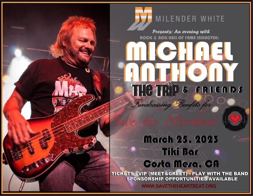 Tiki Bar 1700 Placentia Ave, Costa Mesa, CA, United StatesLive music from Michael Anthony along with The Trip and Friends. Pre-sales available at: https://tickettailor.com/events/savetheheartbeat/825921