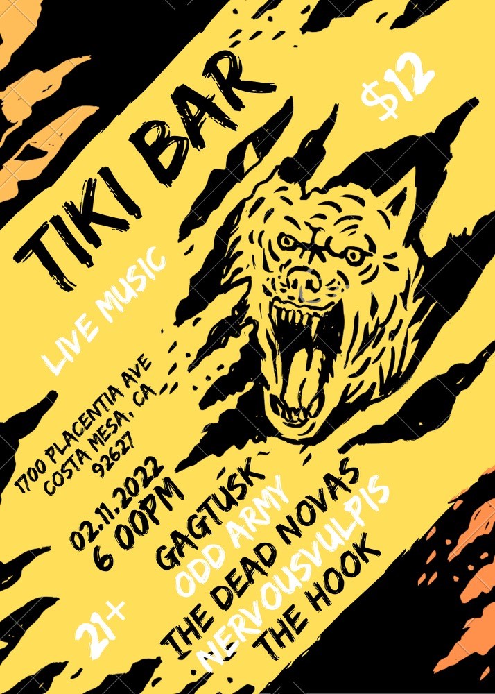 Live music from The Hook, nevervousvulpis, Odd Army, Gagtusk and The Dead Novas
