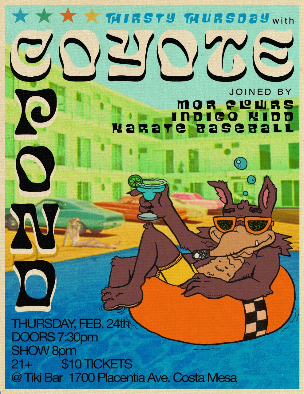 Live music from Coyote Pond, Karate Baseball, Indigo Kid and MorFlowers