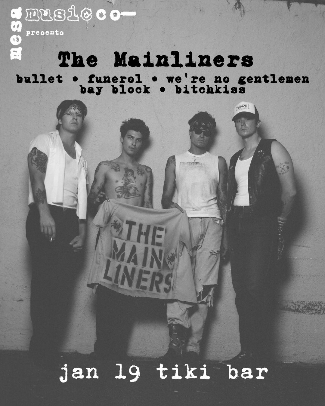 Tiki Bar 1700 Placentia Ave, Costa Mesa, CA, United StatesLive music from The Mainliners, Bullet and We're No Gentlemen