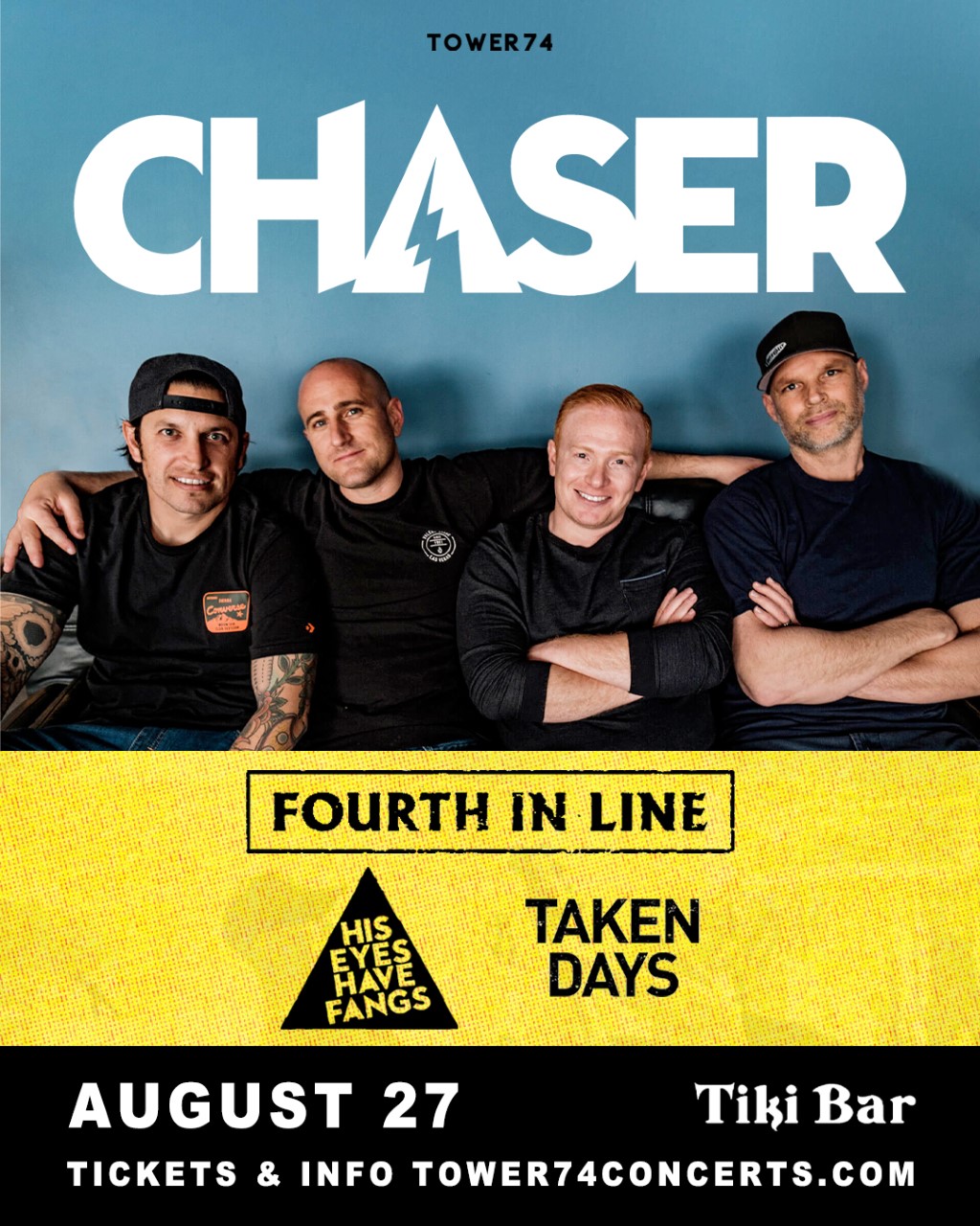 Live music from Chaser, Taken Days, Fourth In Line,