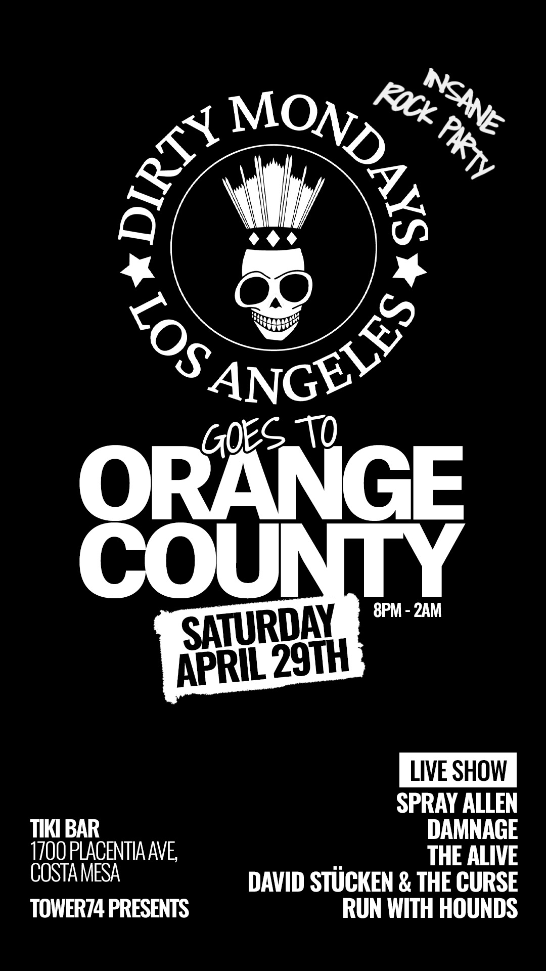 Tiki Bar 1700 Placentia Ave, Costa Mesa, CA, United StatesLive music from Spray Allen, Damnage, The Alive, David Stucken & The Curse and Run With Hounds