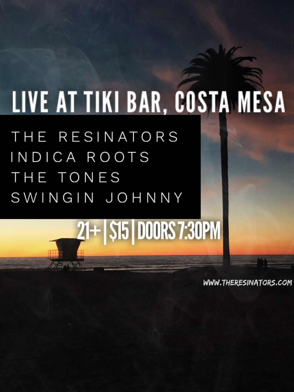 Live music from Swingin Johnny, The Resinators, The Tones and Indica Roots