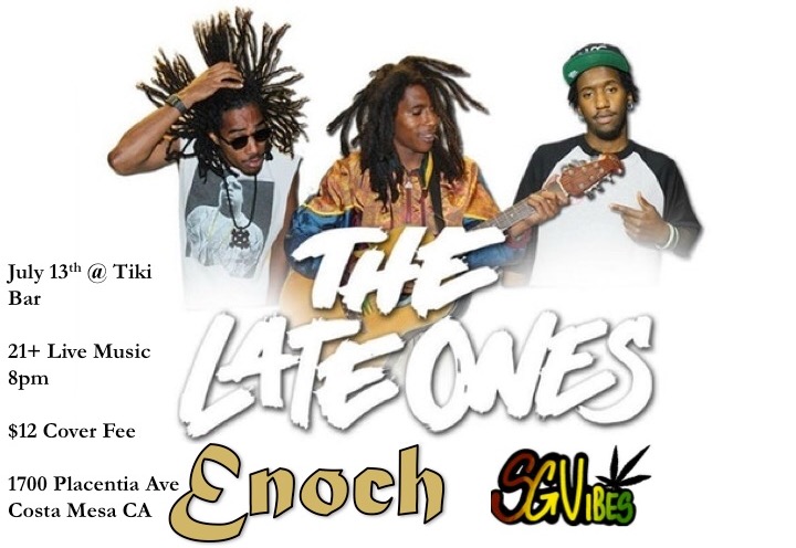Tiki Bar 1700 Placentia Ave, Costa Mesa, CA, United StatesLive reggae from The Late Ones, Enoch and SG Vibes