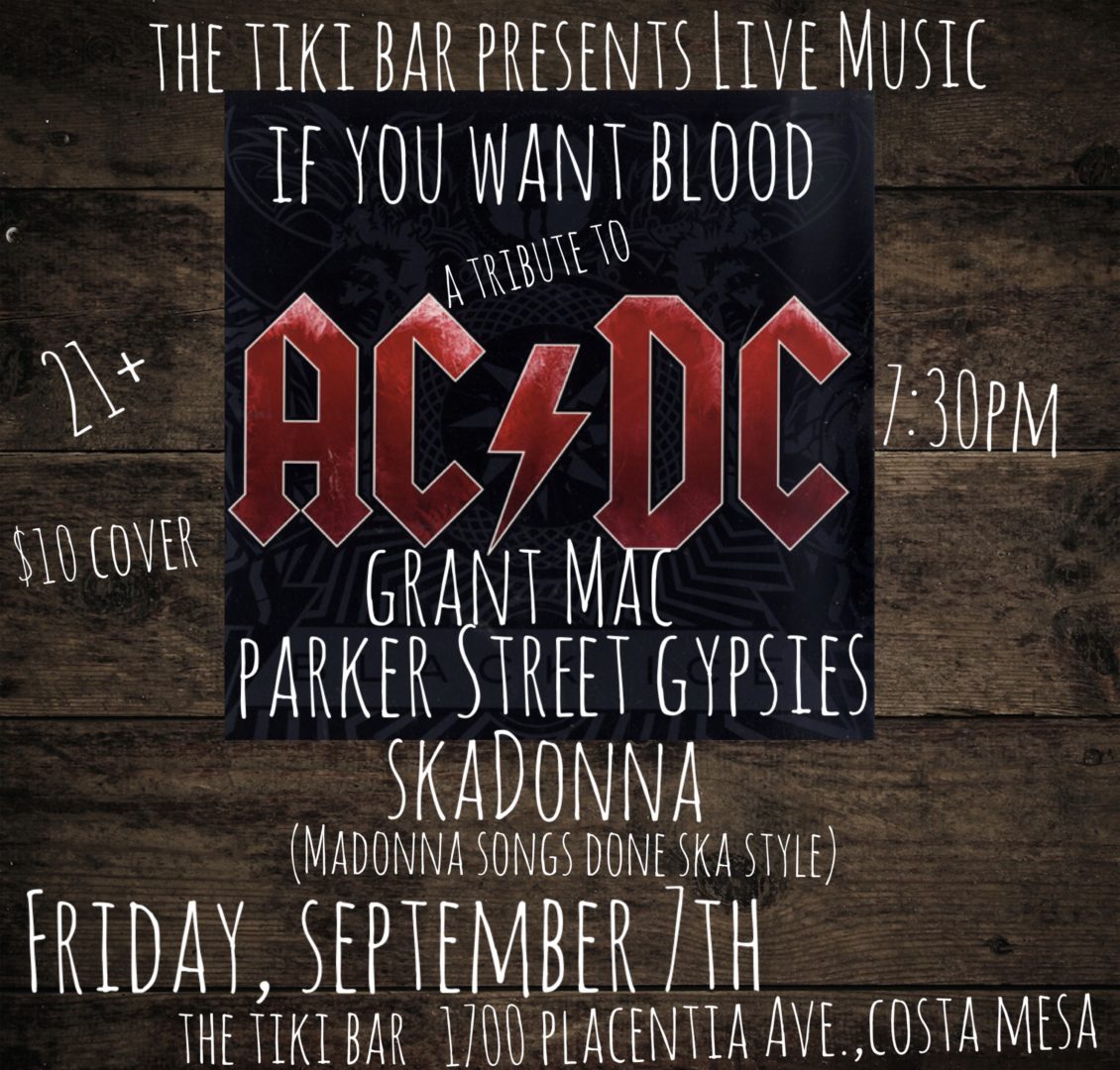 Live music from If You Want Blood (AC/DC tribute), Skadonna and Parker Street Gypsies