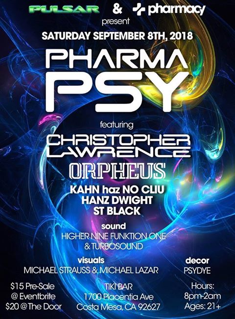 Pharma-PSY presents: Christopher Lawrence, Orpheus, Kahn has No Cliu, Hanz Dwight and ST Black