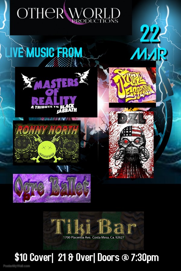 Live music from Masters of Reality (Black Sabbath tribute), Ogre Ballet, Purple Jefferson, Ronny North
