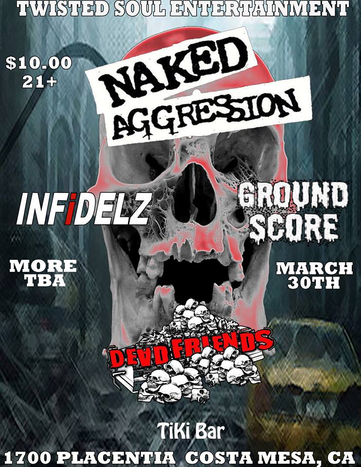 Live music from Dead Friends, The Infidelz, Naked Aggression, and Ground Score