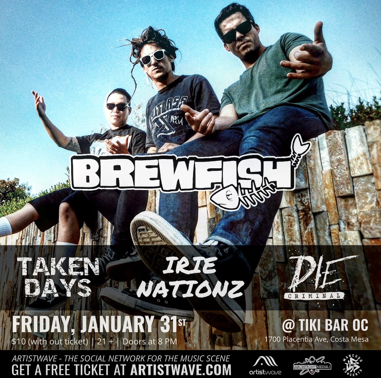 Live music from Brewfish, Taken Days, Die Criminal and Irie Nationz